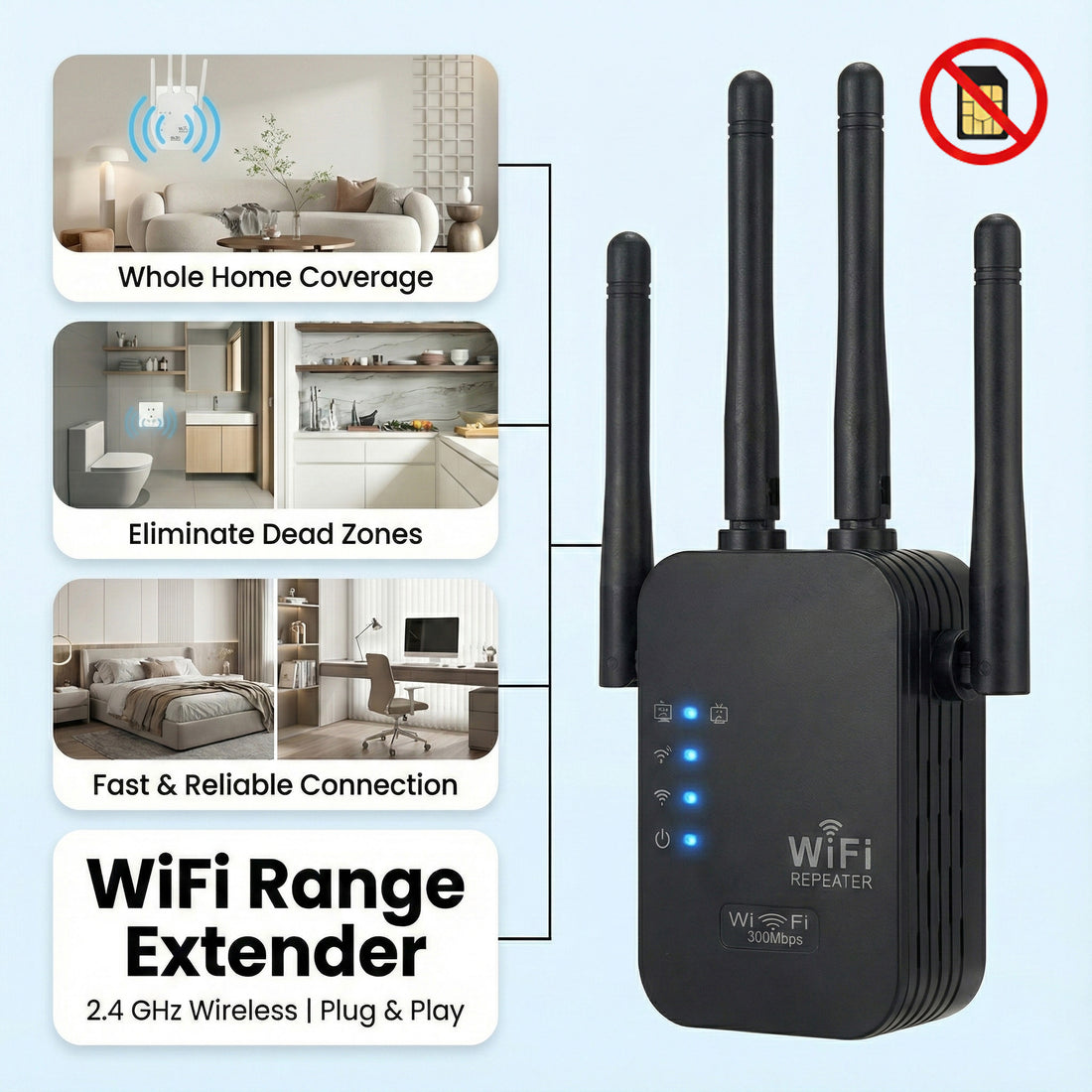 WiFi Range Extender 300Mbps (4 Antennas) | Long Range WiFi Extender